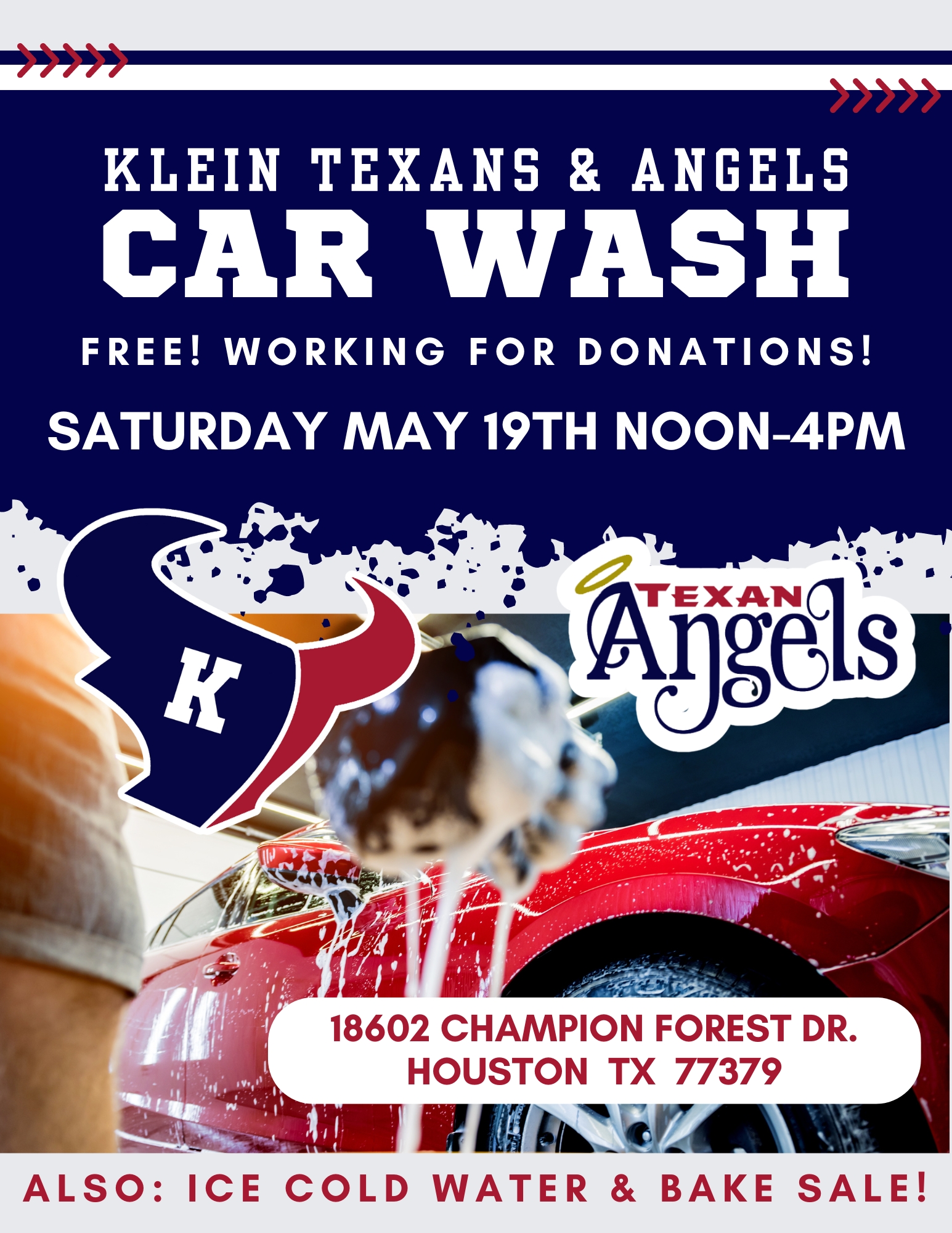 X-ALT-DESC;FMTTYPE=text/html:<p><span style="font-size: 22px;"><strong>Banner Photos will be taken on Friday, 8/12 at Klein cain High School.&nbsp; Please come completely dressed at your assigned time slot.&nbsp;&nbsp;</strong></span></p><p><span style="font-size: 18px;">Cherubs &amp; Angels - 4:20pm - 4:40pm</span></p><p><span style="font-size: 18px;">Flag Football&nbsp; &amp; Seniors -&nbsp; 5:00pm - 5:30pm</span></p><p><span style="font-size: 18px;">Juniors&nbsp; -&nbsp; 5:20pm - 6:00pm</span></p><p><span style="font-size: 18px;">Sophomores&nbsp; -&nbsp; 5:50pm - 6:30pm</span></p><p><span style="font-size: 18px;">Freshman&nbsp; -&nbsp; 6:20pm - 7:00pm</span></p><p>&nbsp;</p>